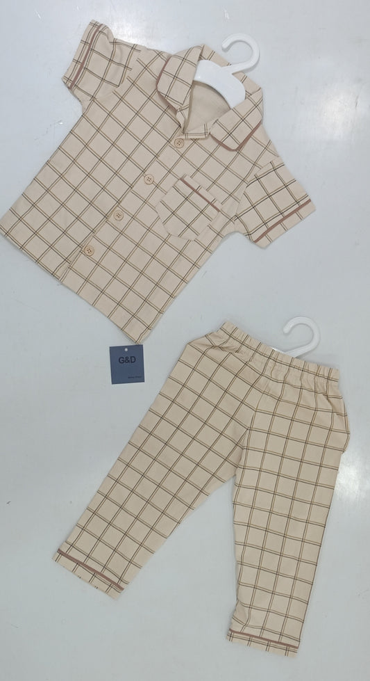 Kids Beige Check Formal Co-Ord Set (Shirt + Pants)