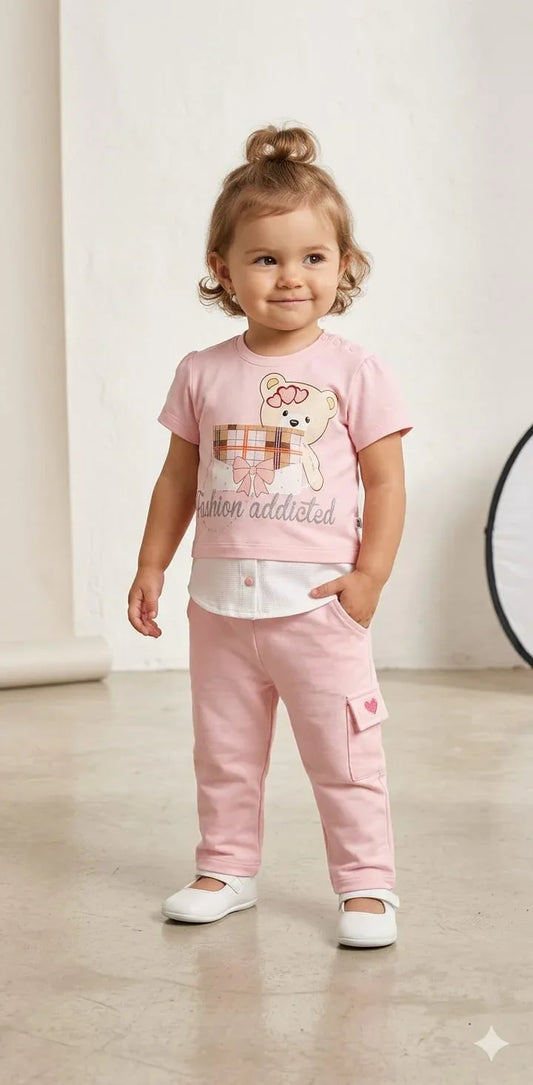 Mint Kids Girls Pink Bear Co-ord Set (2–5Y)