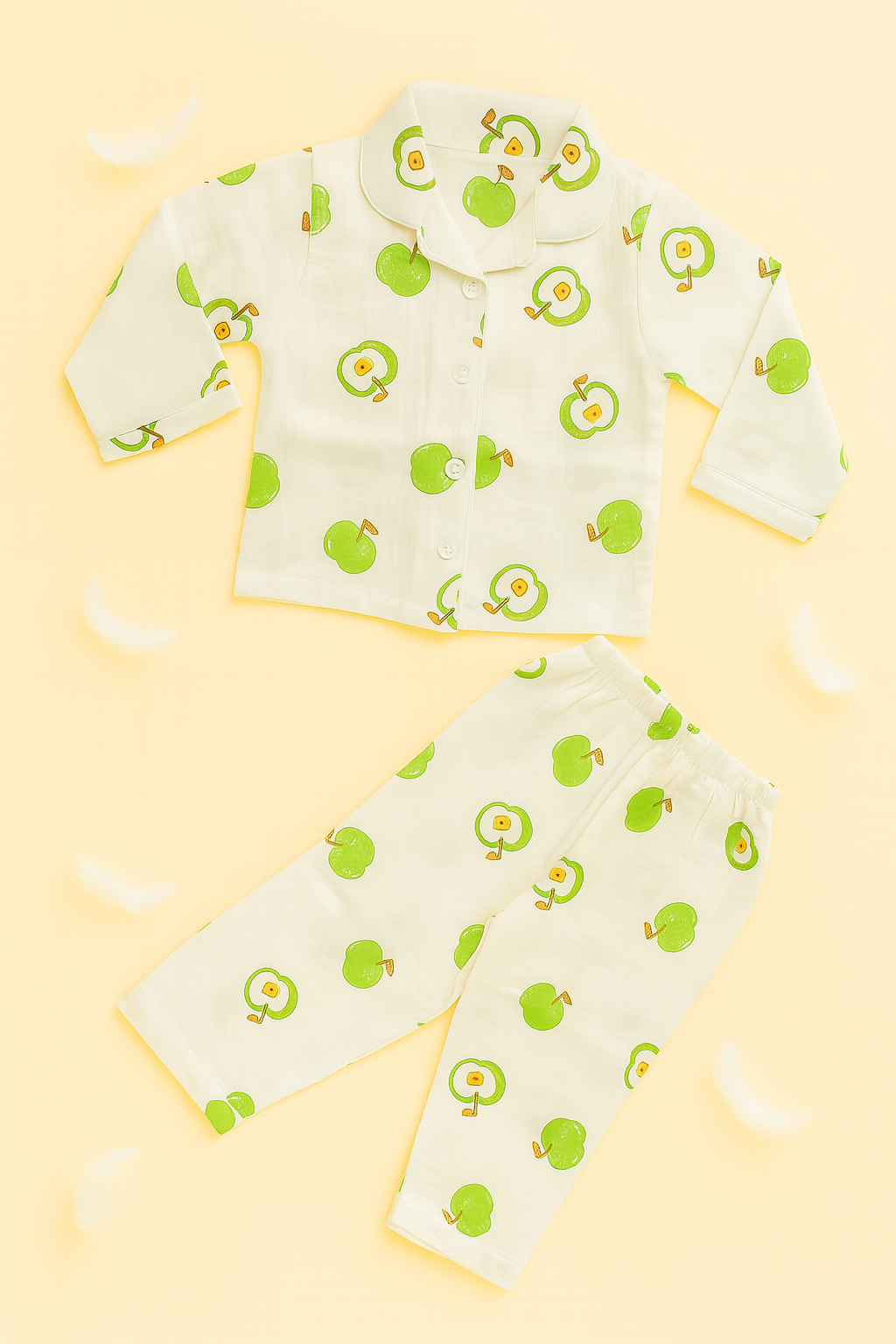 Apple Print Muslin Night Suit for Toddlers (1–3 Yrs)