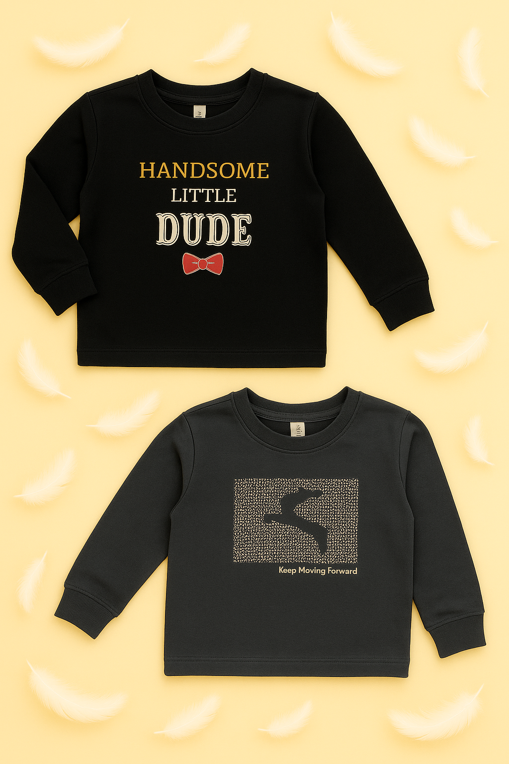 A cheerful winter edit for your little stars! This combo features 4 soft, full-sleeve cotton T-shirts with fun prints – from sporty graphics and cute pandas to bold text styles. Perfect for kids aged 1 to 3 years. Cozy, stretchable, and designed to keep your child comfy and stylish all day!