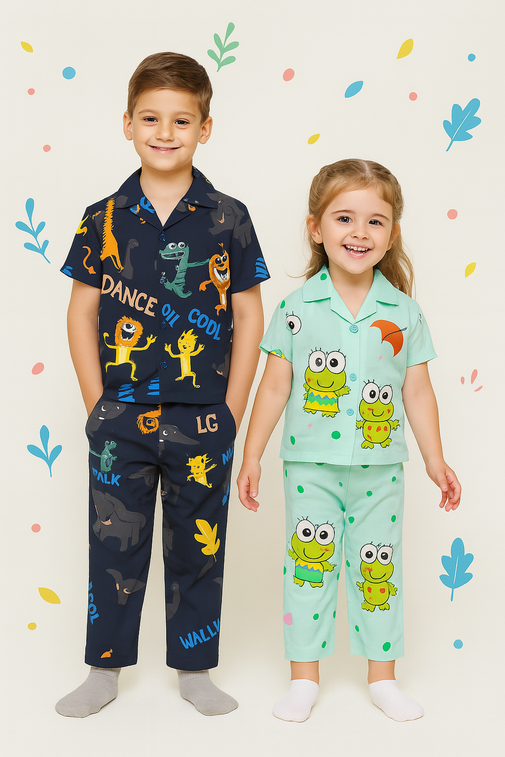 Pumpoosh Kids Cartoon Print Night Suit Set – 100% Cotton